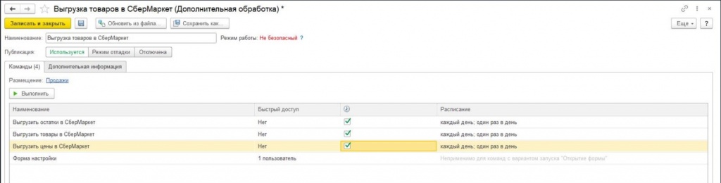 - Поставка продукта предусматривает подключаемую внешнюю обработку и расширения, которыми дополняется конфигурация 1С без использования безопасного режима.